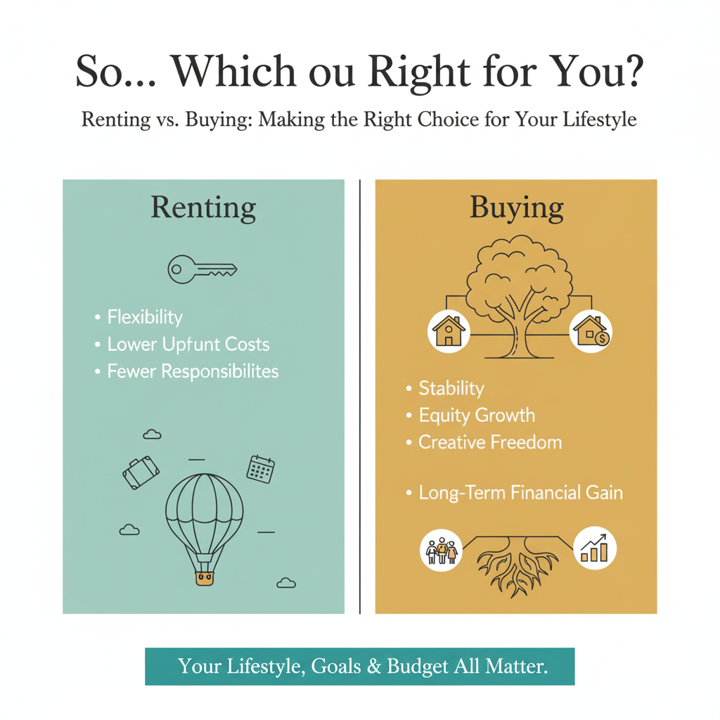 Renting = flexibility, lower upfront costs, fewer responsibilities.